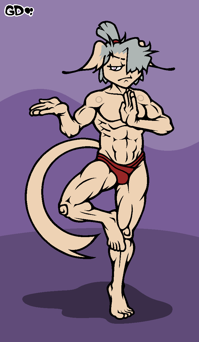 HK-7 Lanogan, who prefers a silent pronunciation of his model number, practicing a stance of Reflex, a martial art of his own creation. This fighting system relies entirely on the durability of android physiology, forgoing defensive forms in favor of grappling and close-range counters. By flexing and twisting his synthetic muscles beyond normal organic limits, Lanogan can generate enough tension to unleash lightning-quick strikes of devastating force, like a rubber band snapping back with metal fists and feet attached.